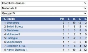Mundolsheim, Nancy Stanislas 2, Mulhouse 2, Strasbourg, Bischheim et Huningue joueront cette saison dans le groupe 4.