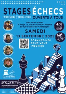 L’Échiquier Châlonnais organise le samedi 13 septembre un stage d’entrainement.