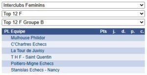 Trois équipes du Grand Est évolueront cette saison en Top12F, Vandoeuvre dans le Groupe A , Mulhouse Philidor et Nancy Stanislas dans le B. La phase de poules se déroulera du 13 au 17 mai 2026. Les deux premières équipes de chaque groupe disputeront la phase finale fin juin tandis que les deux dernières descendront d’une division.