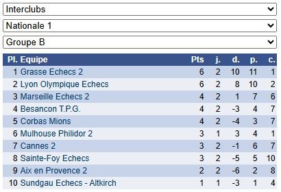 Les résultats de N1 – Groupe B : https://www.echecs.asso.fr/EquipesCalendrier.aspx?Ref=26&Saison=3000