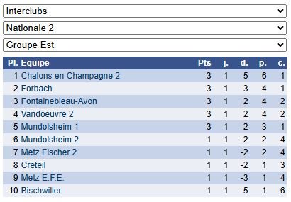 Les résultats de N2 – Groupe Est : https://www.echecs.asso.fr/EquipesCalendrier.aspx?Ref=878&Saison=3000
