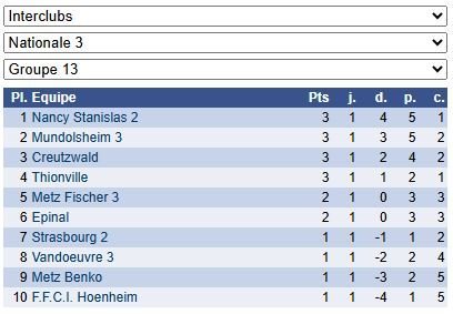 Les résultats de N3 – Groupe 13 : https://www.echecs.asso.fr/EquipesCalendrier.aspx?Ref=49&Saison=3000