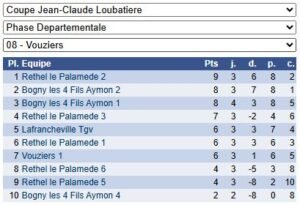 Les lauréats sont : Rethel le Palamède 2, Bogny les 4 Fils Aymon 2, Bogny les 4 Fils Aymon et Blagny la Tour d’Yvois.