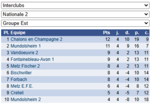 Les résultats de N2 – Groupe Est : https://www.echecs.asso.fr/EquipesCalendrier.aspx?Ref=878&Saison=3000