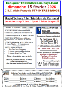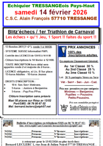 1er Triathlon d’échecs de Carnaval de Tressange Blitz – Samedi 14 février 2026 : Fédération Française des Échecs