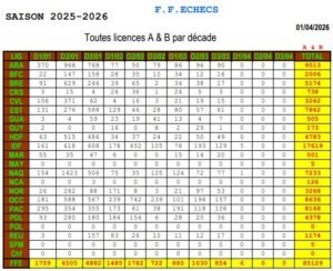 Sept mois après le lancement de la saison 2025-2026, l’engouement pour les échecs est au plus haut avec 7 862 prises de licences ce qui permet à notre Ligue de conserver la quatrième place du palmarès national tout en talonnant la Ligue PACA.
