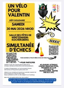 Une simultanée d’échecs est organisée samedi 30 mai 2026 à 14H30 à la salle des fêtes de Wintzenheim-Kochersberg. 40 joueurs pourront y défier Sébastien Peter, Président du club de Mundolsheim et Maître FIDE.